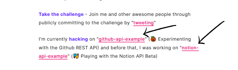 An another example is of the section that displays my two last updated GitHub respositories (see where the arrows are pointing):